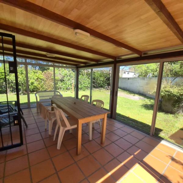 Se Alquila muy linda casa en La Floresta, a 500 metros de la playa. Consta de Living comedor con cocina integrada, 3 dormitorios, 2 baños, aire acondicionado en el living y en el dormitorio con cama de dos plazas, muy lindo jardin, en el fondo parrillero. Tiene wifi.