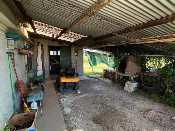 Cochera y depósito de herramientas varias y tractor cortador de césped.